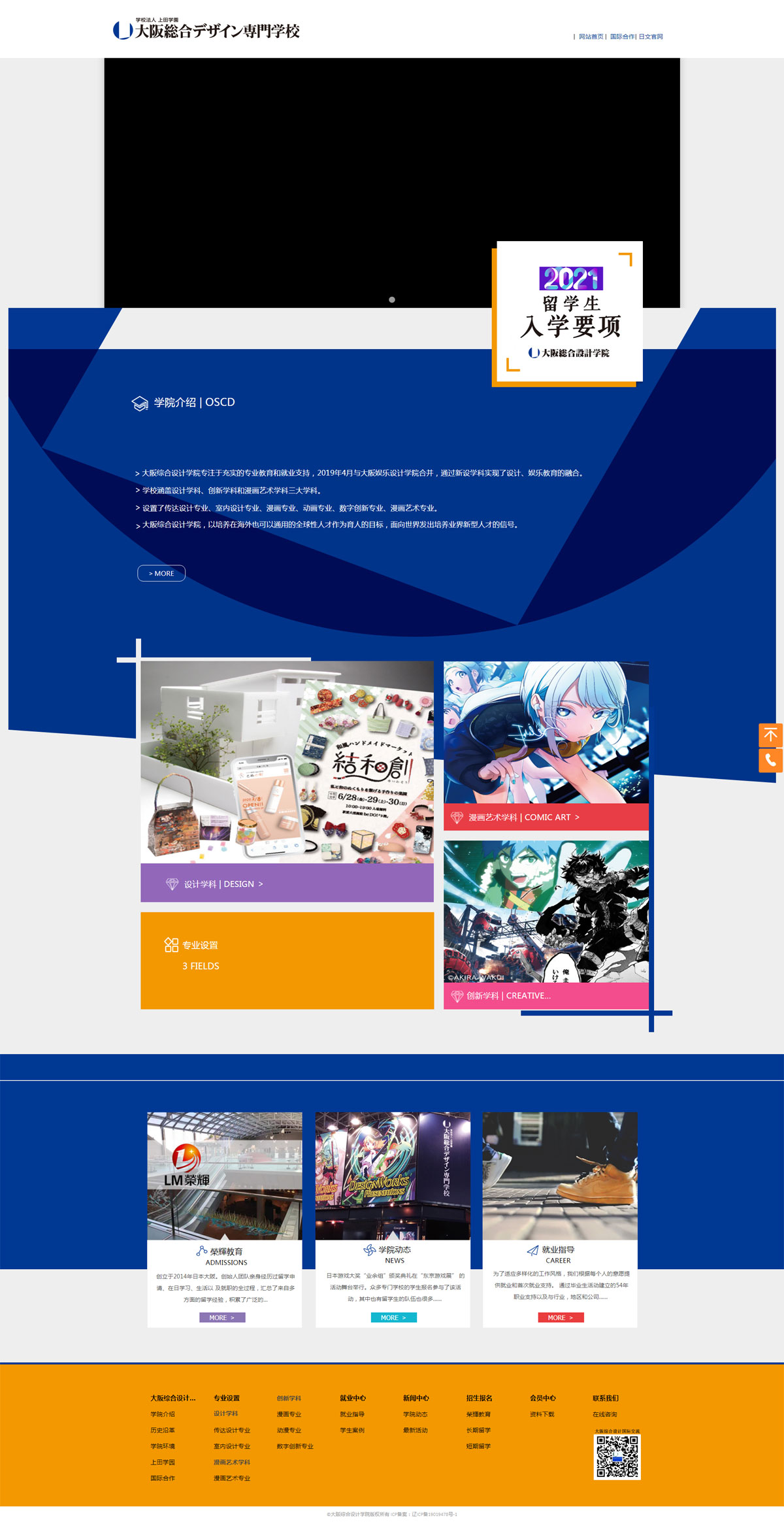 學(xué)院專注于堅(jiān)實(shí)的專業(yè)教育和就業(yè)支持,2019年與大阪娛樂設(shè)計(jì)學(xué)院合并,通過新設(shè)學(xué)科實(shí)現(xiàn)了設(shè)計(jì)、娛樂教育的融合。并從2020年起將緊隨時(shí)代潮流和創(chuàng)新要求,整合創(chuàng)建全新的教育踐習(xí)體系。學(xué)院目前設(shè)有:設(shè)計(jì)、創(chuàng)新和漫畫藝術(shù)三大學(xué)科;分設(shè):傳達(dá)設(shè)計(jì)、室內(nèi)設(shè)計(jì)、漫畫、藝術(shù)插畫、手辦模型制作、動(dòng)漫、游戲和漫畫藝術(shù)等8門專業(yè),可謂囊括時(shí)下熱門且頗具就業(yè)競爭力和市場發(fā)展前景的文創(chuàng)設(shè)計(jì)領(lǐng)域的學(xué)科和專業(yè)。